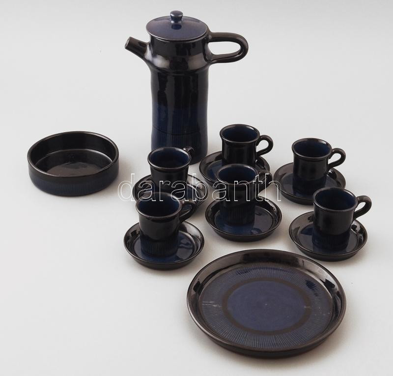 Leírás: Skandináv iparművész kávés szett. Mázas kerámia, jelzés nélkül, 15 darabos, hibátlan, m: 23 cm alatt