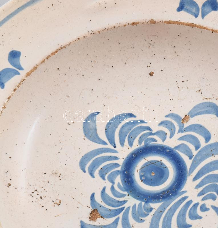 Tál. Felvidék, cca 19. sz. második fele, kopással, akasztójánál sérült... https://www.darabanth.com/hu/466-Gyorsarveres/466.0/Porcelan-keramia-uveg/Keramiak~5/Tal-Felvidek-cca-19-sz-masodik-fele-kopassal-akasztojanal-serult-d-23-cm~II3140207