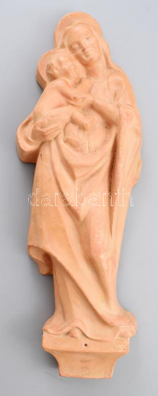 Leírás: cca 1930, Szűz Mária a kisded Jézussal. Engóbozott kerámia, kis kopással, m: 47 cm