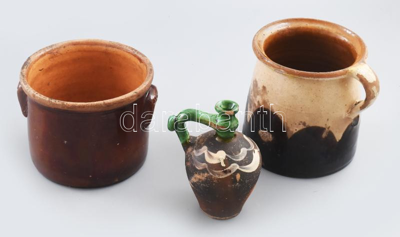 cca 20. sz. eleje, Északkelet-Magyarország, 3 darab népi tárgy: vizesk... https://www.darabanth.com/hu/466-Gyorsarveres/466.0/Porcelan-keramia-uveg/Keramiak~5/cca-20-sz-eleje-Eszakkelet-Magyarorszag-3-darab-nepi-targy-vizeskorso-fazek-szilke-Se~II3143941