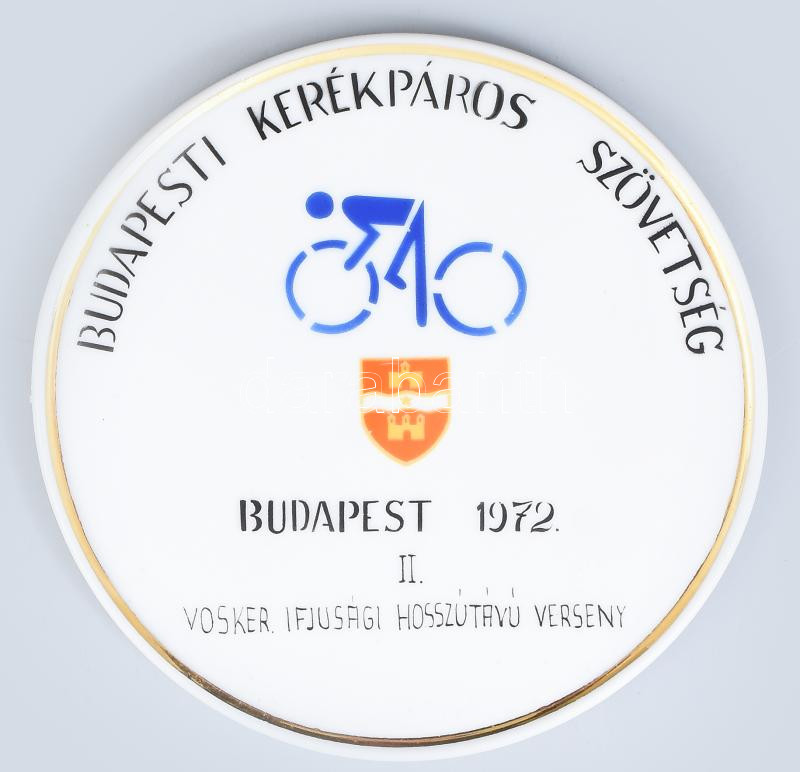 1972, Budapesti Kerékpáros Szövetség Hollóházi díjplakett, jelzett, hi... https://www.darabanth.com/hu/466-Gyorsarveres/466.0/Porcelan-keramia-uveg/Porcelan~6/1972-Budapesti-Kerekparos-Szovetseg-Hollohazi-dijplakett-jelzett-hibatlan-d-13-5-cm~II3142125