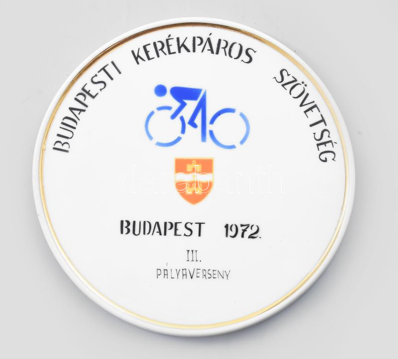 1972, Budapesti Kerékpáros Szövetség Hollóházi díjplakett, jelzett, hi... https://www.darabanth.com/hu/466-Gyorsarveres/466.0/Porcelan-keramia-uveg/Porcelan~6/1972-Budapesti-Kerekparos-Szovetseg-Hollohazi-dijplakett-jelzett-hibatlan-d-13-5-cm~II3142126