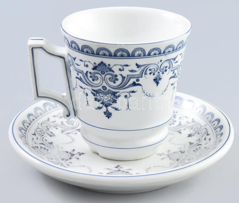 Leírás: Antik masszív porcelánfajansz kávés csésze alátéttel. Matricás, jelzés nélkül, hibátlan