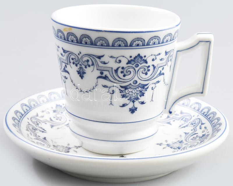 Leírás: Antik masszív porcelánfajansz kávés csésze alátéttel. Matricás, jelzés nélkül, hibátlan