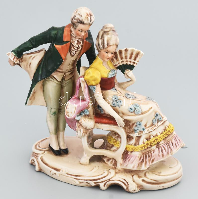 Leírás: Barokk pár, antik német porcelán figura, jelzett, hibátlan, m: 18 cm