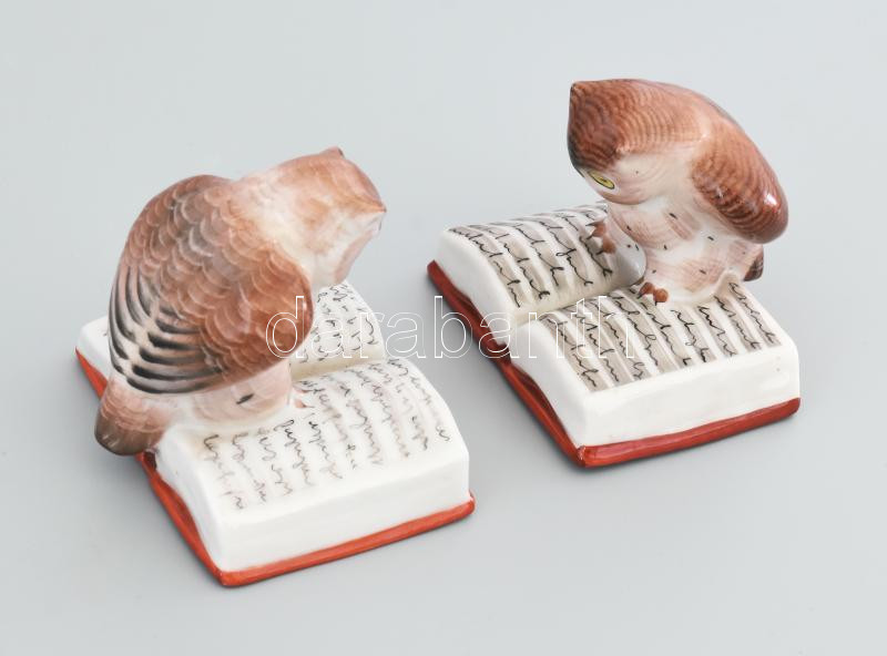 Leírás: Drasche 2 darab könyvön ülő bagoly figura. Jelzett, hibátlan, m: 7 cm
