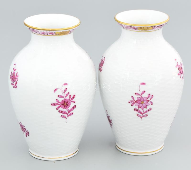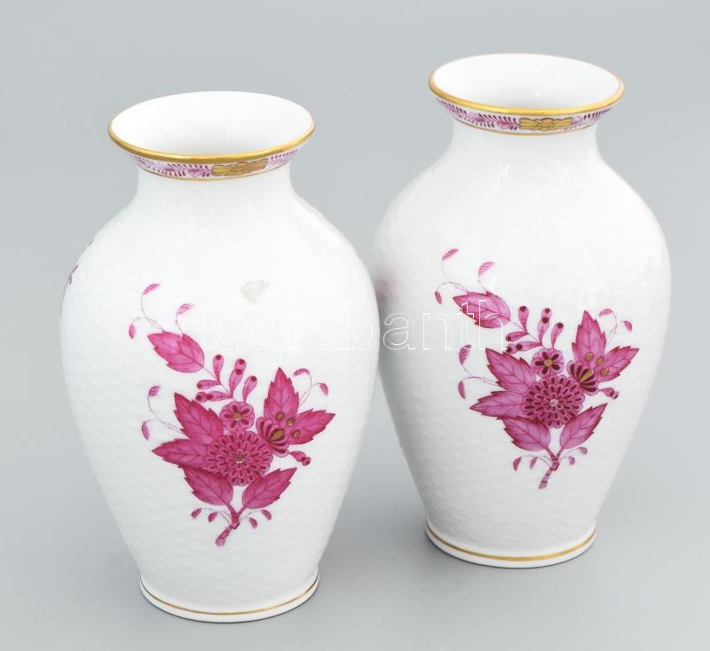 Leírás: Herendi Apponyi purpur mintás váza pár, háncsnyomott felülettel, jelzett, hibátlan, m: 14,5 cm