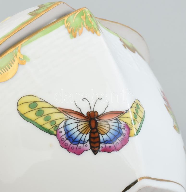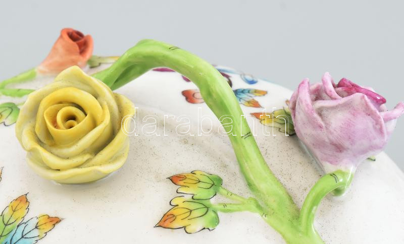 Leírás: Herendi Viktória mintás szív alakú bonbonier, futórózsa fogóval, jelzett, hibátlal, 13x12x11,5 cm