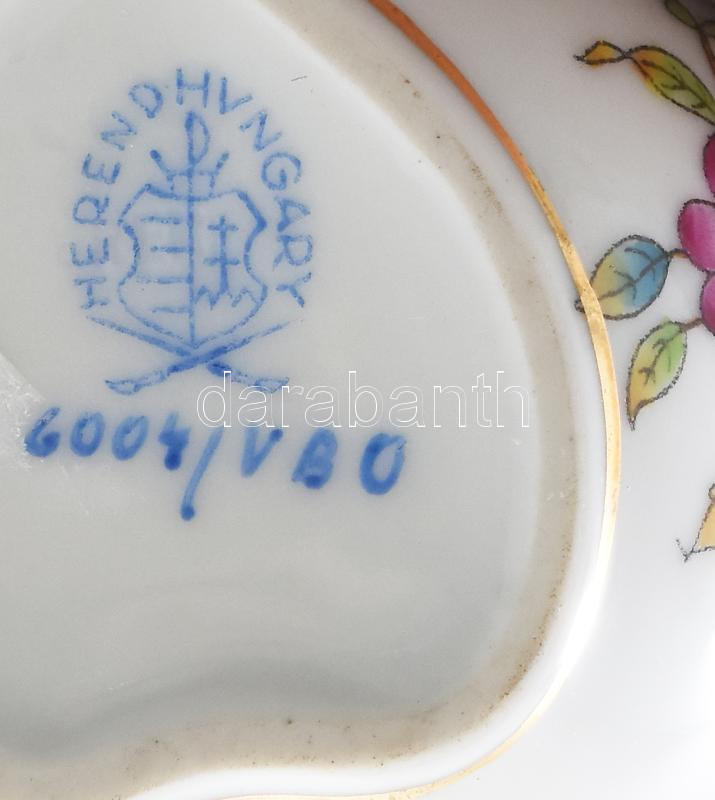 Leírás: Herendi Viktória mintás szív alakú ékszeres doboz, sárga rózsa fogóval. Jelzett, minimális kopással, m: 7,5 cm