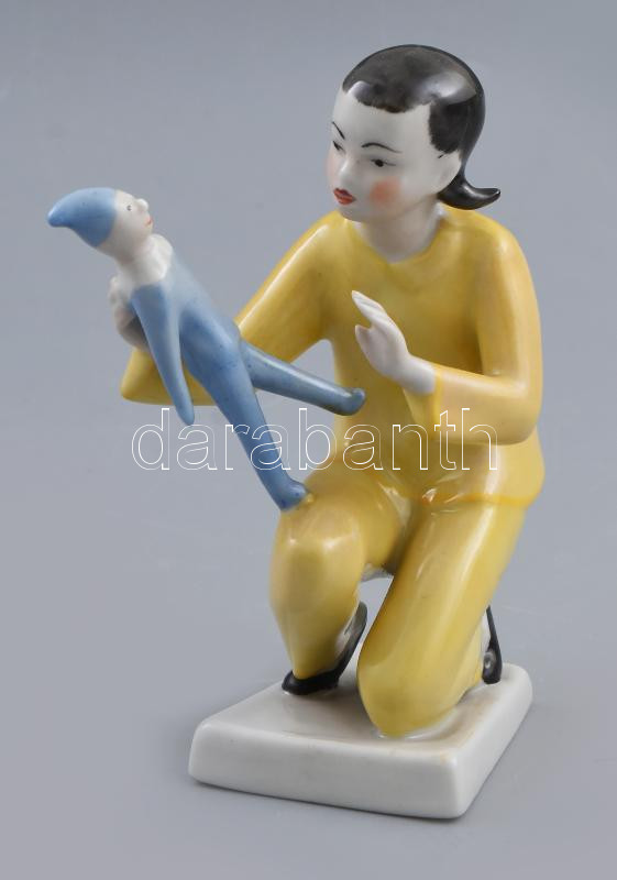 Leírás: Hollóházi babázó lány. Jelzett, hibátlan, m: 13 cm