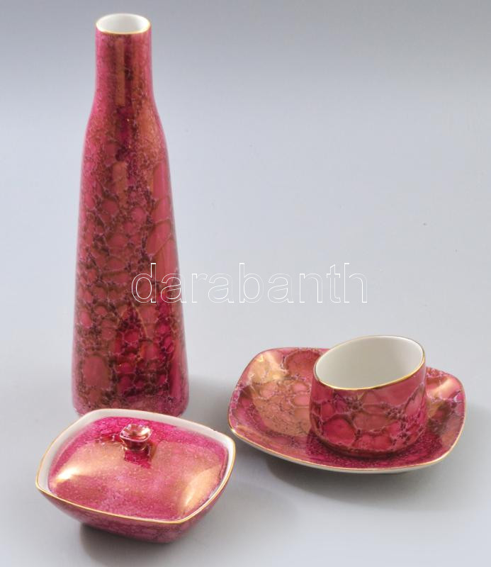 Leírás: Hollóházi márványmintás 4 darabos asztali szett. Jelzett, kis kopással.