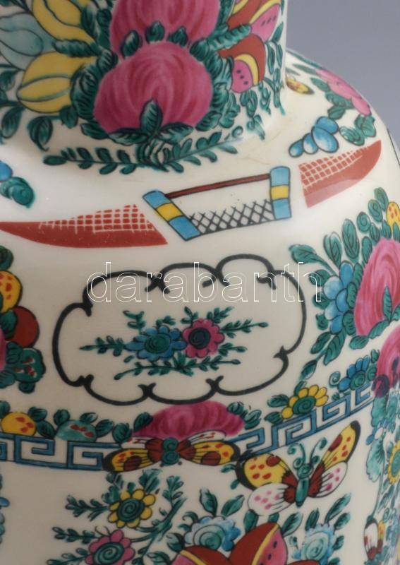 Leírás: Japán itari váza, Matricás, jelzett, alján apró lepattanással 40 cm