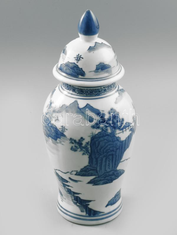 Leírás: Kínai porcelán urnaváza fedővel. Jelzett, hibátlan, m: 30 cm