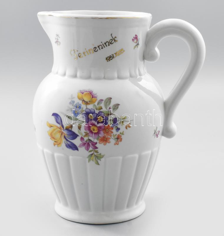 Kispest vizeskancsó. Jelzett, kopással, m: 22,5 cm https://www.darabanth.com/hu/466-Gyorsarveres/466.0/Porcelan-keramia-uveg/Porcelan~6/Kispest-vizeskancso-Jelzett-kopassal-m-22-5-cm~II3140586