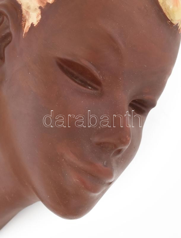 Leírás: Német art deco jellegű női fej falidísz. Jelzett, átfestett, m: 24 cm