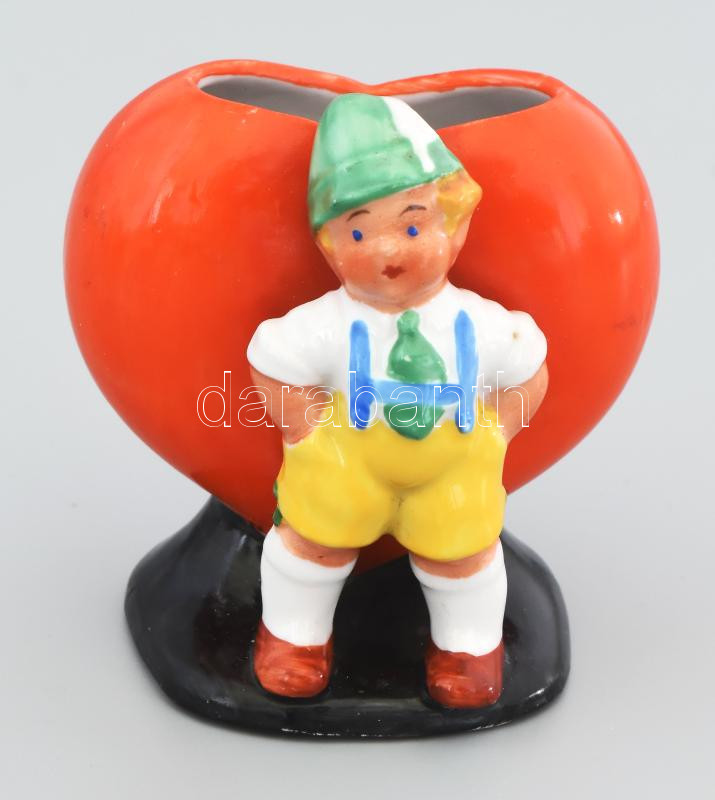 Leírás: Német porcelán szív alakos kisváza, jelzett, kis kopással, m: 7,5 cm