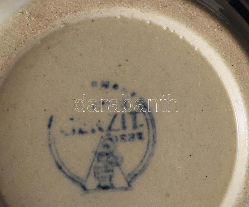 Original Gerzit "Wimbledon 1977" söröskorsó, kék mázzal festett oldalán az adott évben férfi győztes Björn Borg, illetve a női győztes Virginia Wade alakja látható. Jelzéssel, hibátlan, m: 11 cm