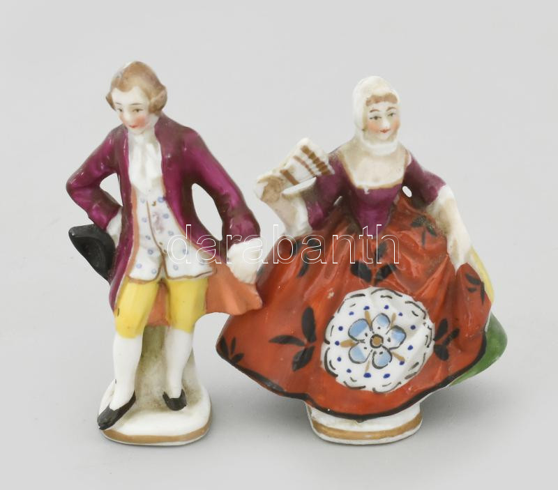 Leírás: Sitzendorf 2 darab minifigura, jelzett, sérüléssel, m: 6 cm
