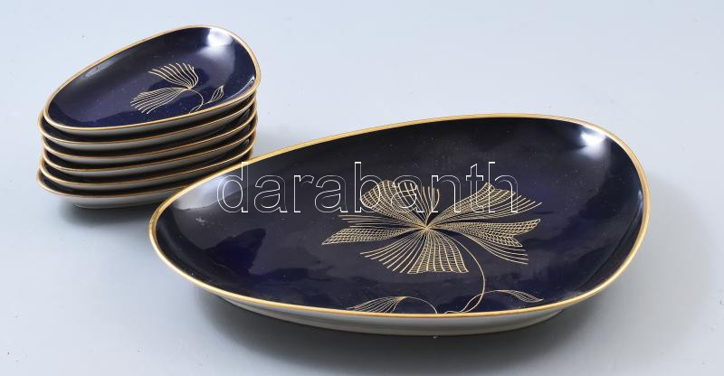 Leírás: Weimar kobalt festésű pralinés készlet, jelzett, kis kopással, 24x19,5 cm