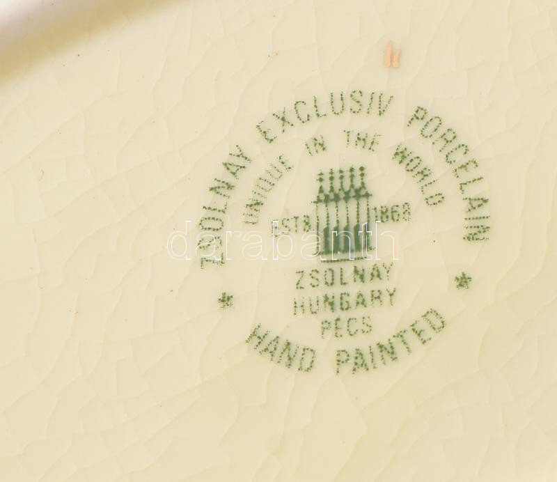 Leírás: Zsolnay Exclusiv ékszeres tálka. Jelzett, hibátlan, mázrepdt, h: 11,5 cm