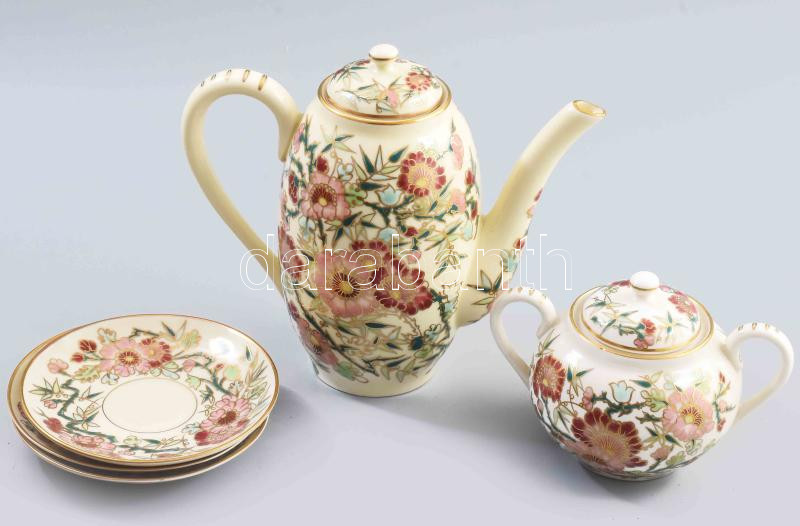 Zsolnay bambusz mintás kiöntő, cukortartó és 3 db tálka. Jelzett, hibá... https://www.darabanth.com/hu/466-Gyorsarveres/466.0/Porcelan-keramia-uveg/Porcelan~6/Zsolnay-bambusz-mintas-kionto-cukortarto-es-3-db-talka-Jelzett-hibatlan-szinarnyalat-kC3~II3130362