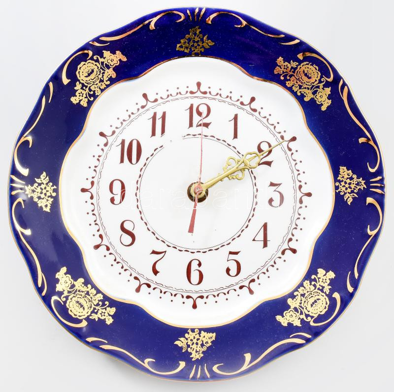 Leírás: Zsolnay falióra. Jelzett, kopással, d: 25,5 cm