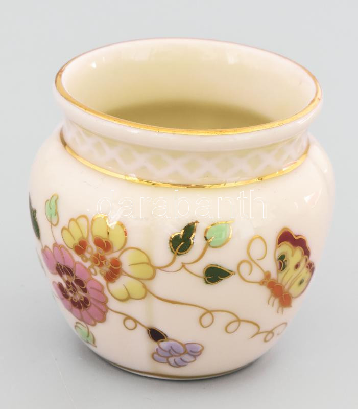 Zsolnay pillangó mintás kisváza. Jelzett, hibátlan, m: 6 cm https://www.darabanth.com/hu/466-Gyorsarveres/466.0/Porcelan-keramia-uveg/Porcelan~6/Zsolnay-pillango-mintas-kisvaza-Jelzett-hibatlan-m-6-cm~II3144565