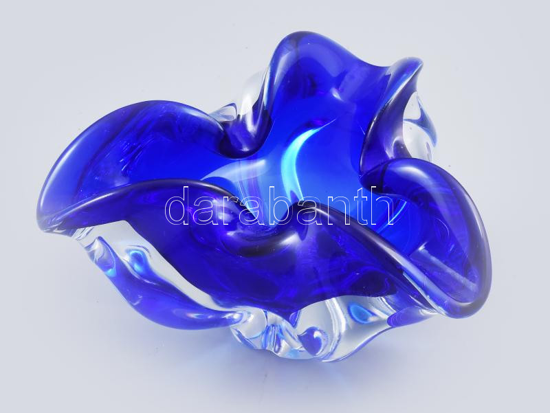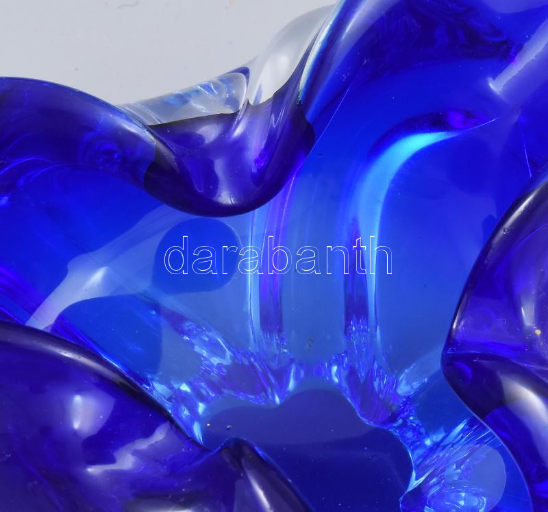 Leírás: Antik cseh asztaldísz, anyagában kéken színezett, jelzés nélkül, kis kopással, d: 19 cm, m: 10,5 cm