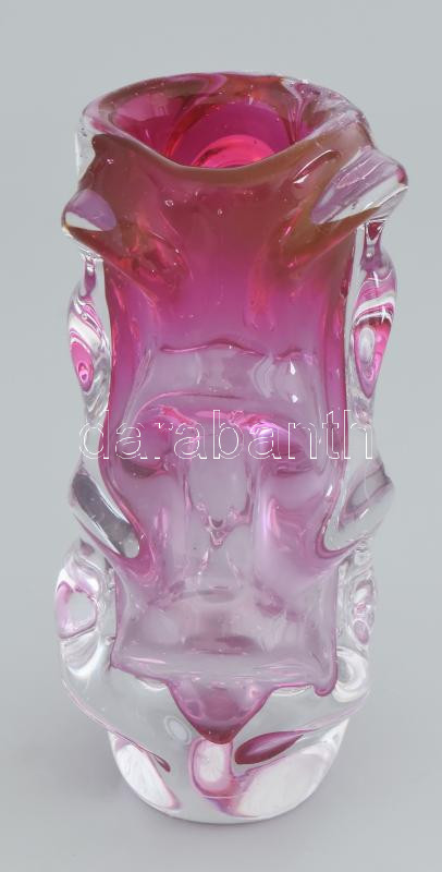 Leírás: Cseh kristály váza, rózsaszín. Anyagában színezett, hibátlan 19 cm