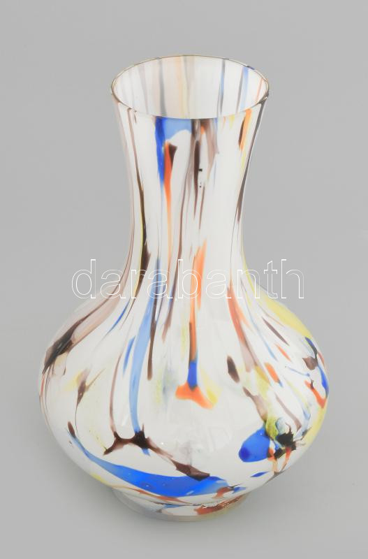 Murano színezett mintás váza. Jelzés nélkül, hibátlan, m: 21,5 cm https://www.darabanth.com/hu/466-Gyorsarveres/466.0/Porcelan-keramia-uveg/Uvegtargyak~7/Murano-szinezett-mintas-vaza-Jelzes-nelkul-hibatlan-m-21-5-cm~II3127410