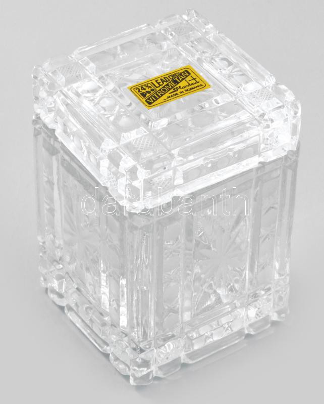 Leírás: Ólomkristály cukordoboz. Jelzett, kis kopással, 13x9x9 cm