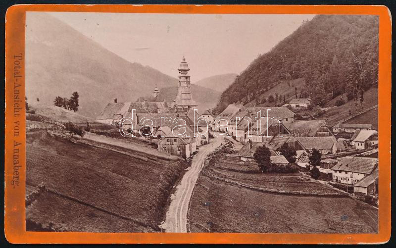 Leírás: 1893 Mariazell látképe, keményhátú fotó Nicolaus Kuss műterméből, 6,5×10,5 cm