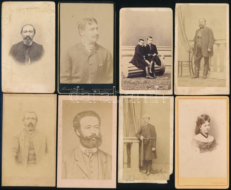 Leírás: cca 1865-1900 Vegyes keményhátú fotó tétel, vegyes állapotban, 8 db, 10,5×6,5 cm
