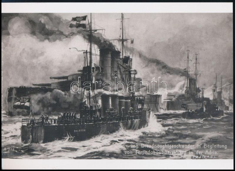 cca 1915 A ,,Balaton" nevű torpedóromboló az Adrián, Fekete György (1904-1990) budapesti fényképész hagyatékából 1db modern nagyítás, vélhetően képeslapról készült a felvétel, jelzés nélkül, 15x21 cm