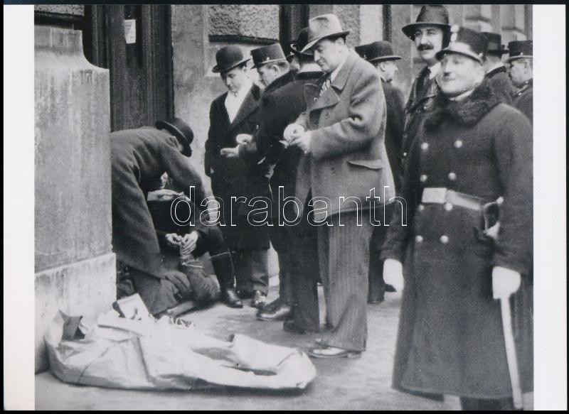 cca 1935 Budapesti bankrablás helyszínelése, 1 db modern nagyítás a néhai Képes Vasárnap (1925-1944) című lap hírügynökségi fotóinak archívumából, jelzés nélkül, 15x21 cm