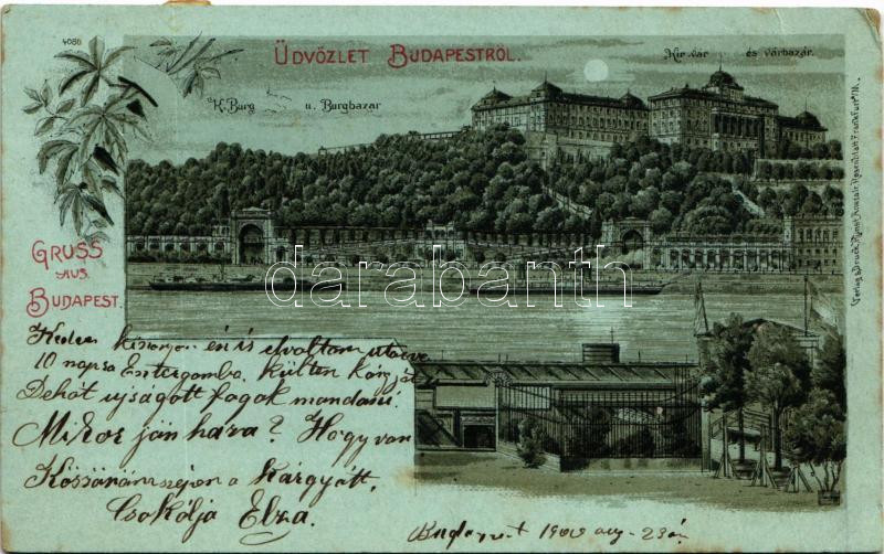 Leírás: 1900 Budapest I. Királyi vár és várbazár. Kunstanstalt Rosenblatt Art Nouveau, floral, litho (EK)