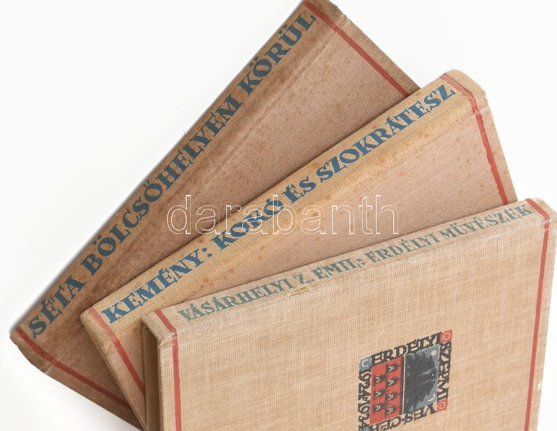 Az Erdélyi Szépmíves Céh jubileumi díszkiadása, 3 kötet: Vásárhelyi Z. Emil: Erdélyi művészek.; Séta bölcsőhelyem körül. Szerk.: Kovács László.; Kemény János: Kokó és Szokrátesz. Kolozsvár, [1934-1940], Erdélyi Szépmíves Céh. Kiadói egészvászon-kötés, változó állapotban, részben foltos borítókkal.