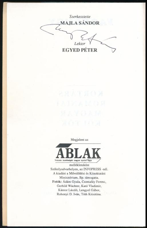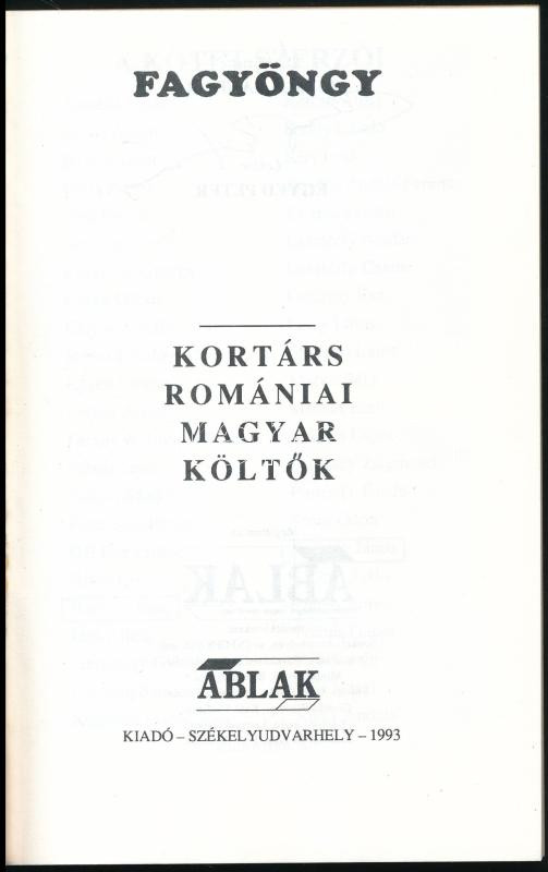 Fagyöngy. Kortárs romániai magyar költők.szerk Majla Sándor Székelyudvarhely, 1993. Ablak. 161p. Kiadói papírkötésben Aláírt: Malja Sándor szerkesztő, Egyed Emese, Jánky Béla, Tompa Gábor költők által