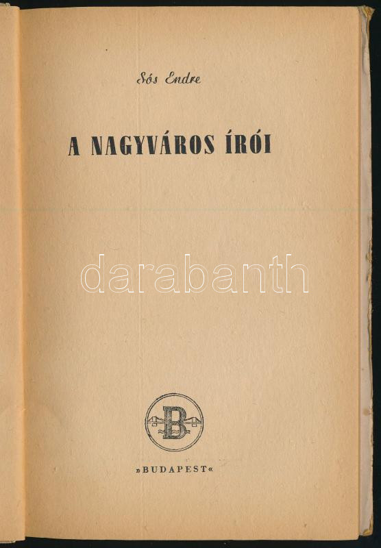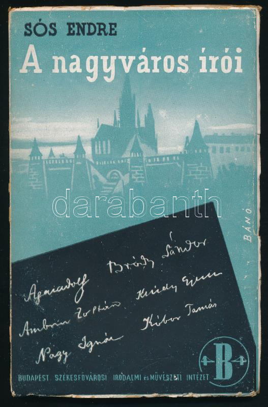 Sós Endre: A nagyváros írói. Pesti Könyvtár. Bp., [1947], Budapest Székesfőváros Irodalmi és Művészeti Intézet, 96 p. Első kiadás. Kiadói illusztrált papírkötés.