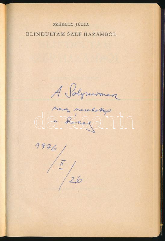 Székely Júlia: Elindultam szép hazámból. Bartók Béla élete. (DEDIKÁLT). Bp., 1971, Móra. Második kiadás. Kiadói kartonált papírkötés, jó állapotban, a gerincen minimális sérüléssel. A szerző, Székely Júlia (1906-1986) író, zongoraművész által DEDIKÁLT példány.