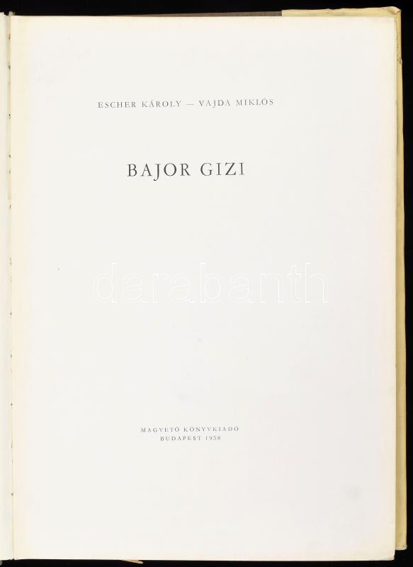 Leírás: Escher Károly - Vajda Miklós: Bajor Gizi. Bp., 1958, Magvető. Fekete-fehér fotókkal illusztrálva. Kiadói egészvászon-kötés, sérült kiadói papír védőborítóban, laza fűzéssel.