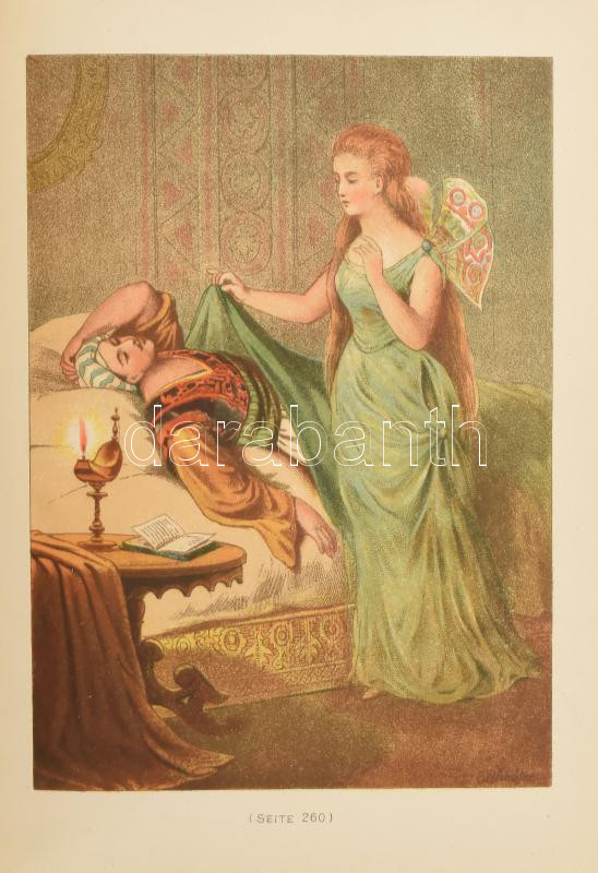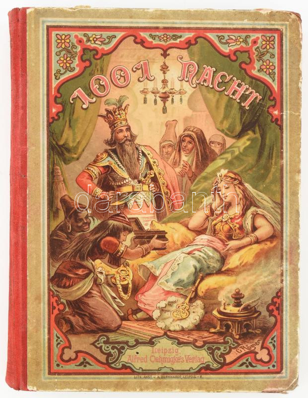 Eduard Wagner: Märchen aus Tausend und Eine Nacht. Für die Jugend bearbeitet von - -. Leipzig, Alfred Dehmigke's Verlag,1 (kromolitográfia) t. + IV+299+1 p.+5 (kromolitográfiák) t. Szövegközti és egy egészoldalas fekete-fehér fametszetekkel illusztrált. Német nyelven. Kiadói félvászon-kötés, kopott, foltos borÃtóval.