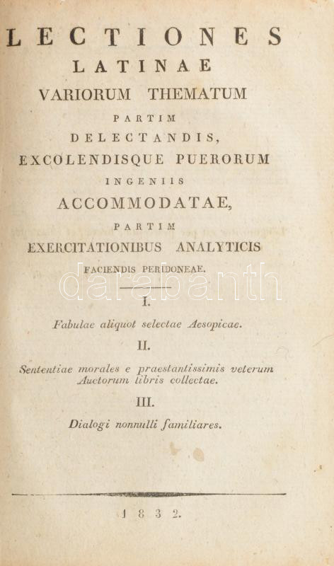 [Grigely József]: Institutiones grammaticae in usum scholarum Regni Hungariae et adnexarum provinciarum. Pars prima. Budae, 1832, Typis Regiae Universitatis Hungaricae, VIII+311 p. Latin nyelven. Kartonált papírkötés, kopott, sérült kötéstáblákkal, hiányzó gerinccel, foltos lapokkal.