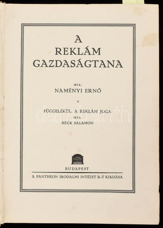 Naményi Ernő: A reklám gazdaságtana. Bp., Pantheon. Kiadói egészvászon... https://www.darabanth.com/hu/467-Gyorsarveres/467.0/Konyvek/Konyvek-Tarsadalomtudomany~1000025/Namenyi-Erno-A-reklam-gazdasagtana-Bp-Pantheon-Kiadoi-egeszvaszon-kotos-hianyos-mellekletek-~II3158863