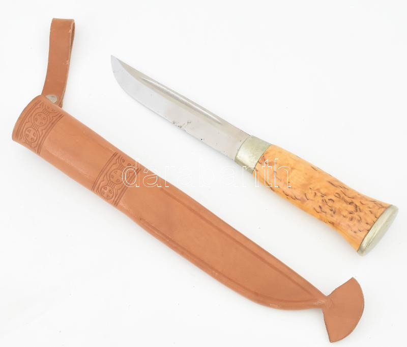 Leírás: IIsakki finn kés, bőr tokban, jelzett, h: 24 cm