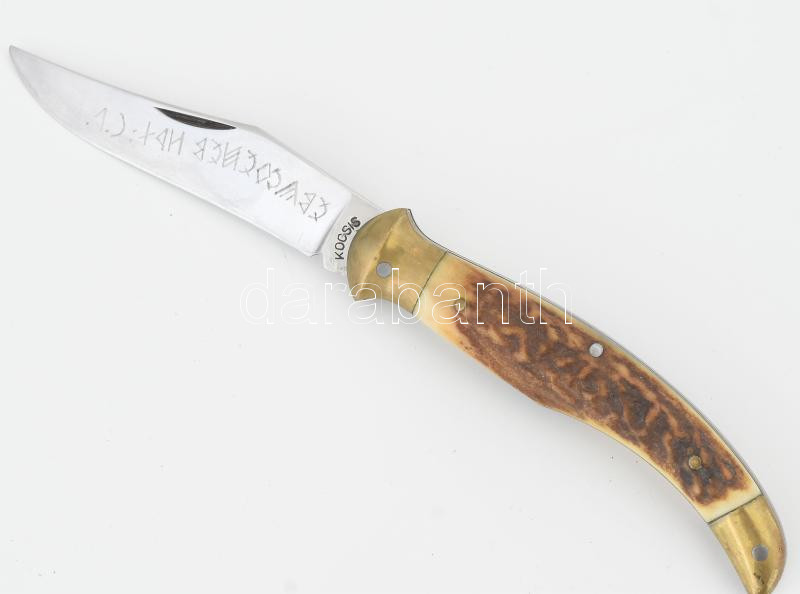 Leírás: Kocsis Ferenc bicska, rovásírásos díszítéssel, nyitva h: 19 cm