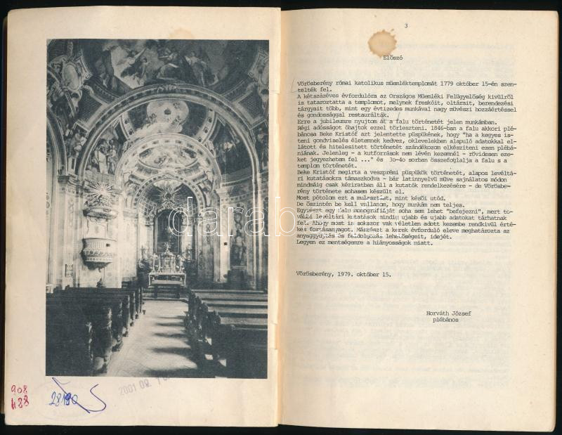 Horváth József: Vörösberény története. (1971 óta Balatonalmádi része.) Vörösberény, 1979.,(Veszprém, Mozirota-ny.) Kiadói papírkötés, kissé kopott borítóval, volt könyvtári példány. Megjelent 1500 példányban.