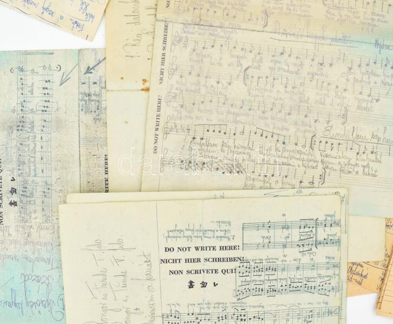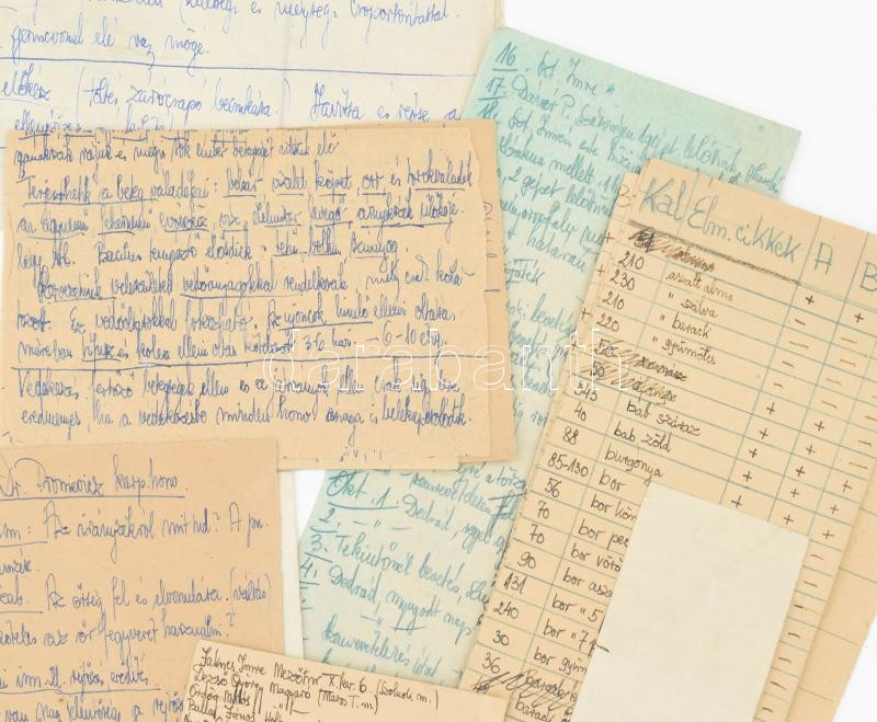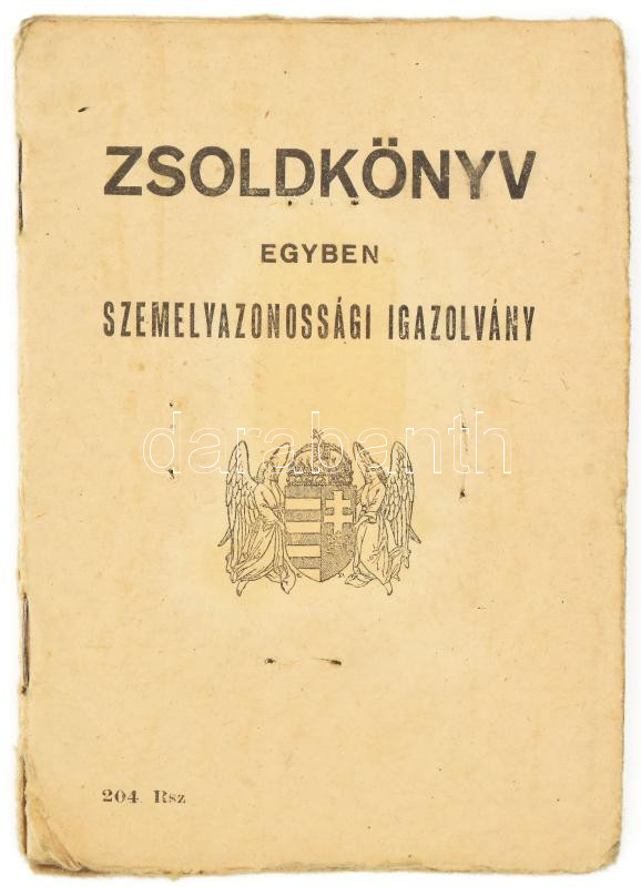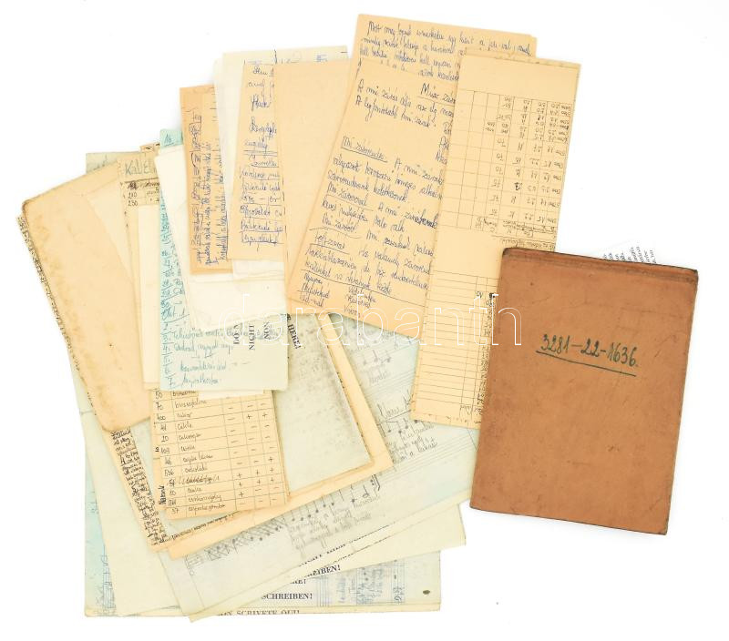 1945 Zsoldkönyv és hadifogoly jegyzetek vitéz Szabó Gyula hadnagy hagyatékából, a jegyzetek között található kalóriatáblázat, Észak-Amerika nagyobb városainak jegyzéke, az elöljárók jogai, Szabó Gyula hadnagy fogságának pontos dokumentációja, feljegyzett imádságok, naplószerű bejegyzések és néhány ismert kottája