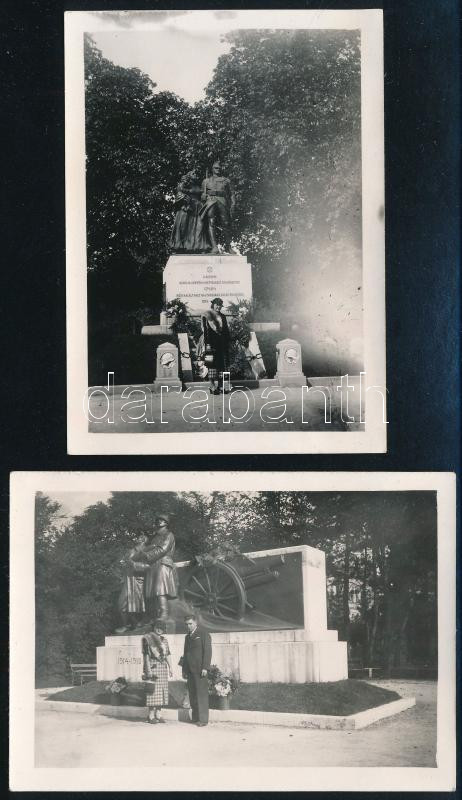 Leírás: cca 1930-1940 Sopron, honvéd hősi szobrok, 2 db fotó, 6×9 cm