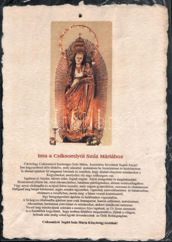 Ima a Csíksomlyói Szűz Máriához + Jézus kép, 2 db merített papírra kés... https://www.darabanth.com/hu/467-Gyorsarveres/467.0/Mutargy-papirregiseg-egyeb/Nyomtatvanyok~2000102/Ima-a-Csiksomlyoi-Szuz-Mariahoz-plus-Jezus-kep-2-db-meritett-papirra-keszitett-fali-kep~II2817416